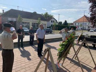Podno spomen obilježja u čast hrvatskim braniteljima na Trgu slobode u Belom Manastiru, predstavnici Grada, Odbora za branitelje i HVIDRA ….