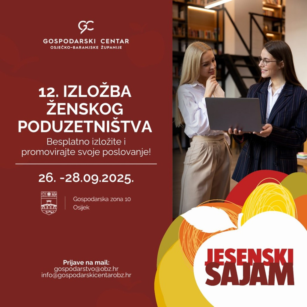 Osječko-baranjska županija nastavlja podupirati žensko i braniteljsko poduzetništvo, u ovom slučaju bit će to kroz održavanje 12. Izložbe ženskog poduzetništva i 9. Izložbe braniteljskog poduzetništva. Kao izravna podrška ženama i braniteljima poduzetnicima, Osječko-baranjska županija osigurala je sredstva za zakup sajamskog prostora na kojima će se besplatno izložiti proizvodi i usluge.