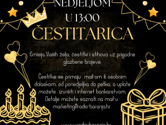 Nedjeljom, u programu Radio Baranje s početkom u 13 sati je emisija ČESTITARICA. Emisija Vaših želja, čestitki i stihova uz ….