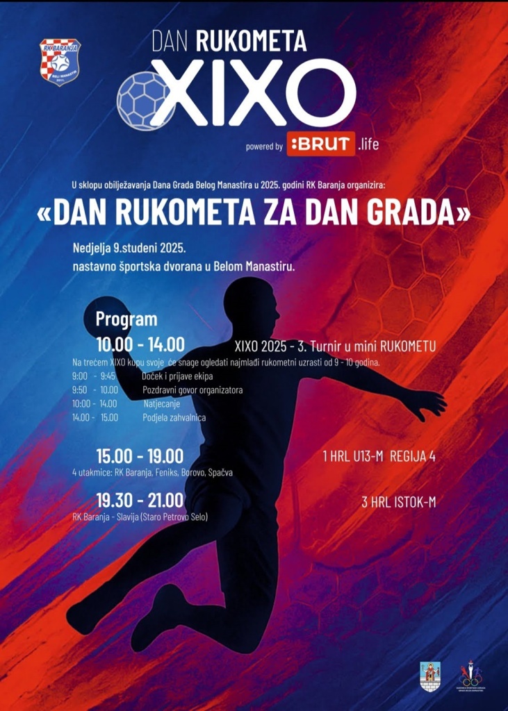 Povodom obilježavanja Dana grada Belog Manastira, Rukometni klub Baranja organizira Dan rukometa, 9. studenog (nedjelja) u nastavno-sportskoj dvorani u Belom Manastiru, od 10 do 14 sati. Očekuje Vas turnir u mini rukometu (uzrast 9-10 godina), te utakmice starijih od 15 do 21 sat.