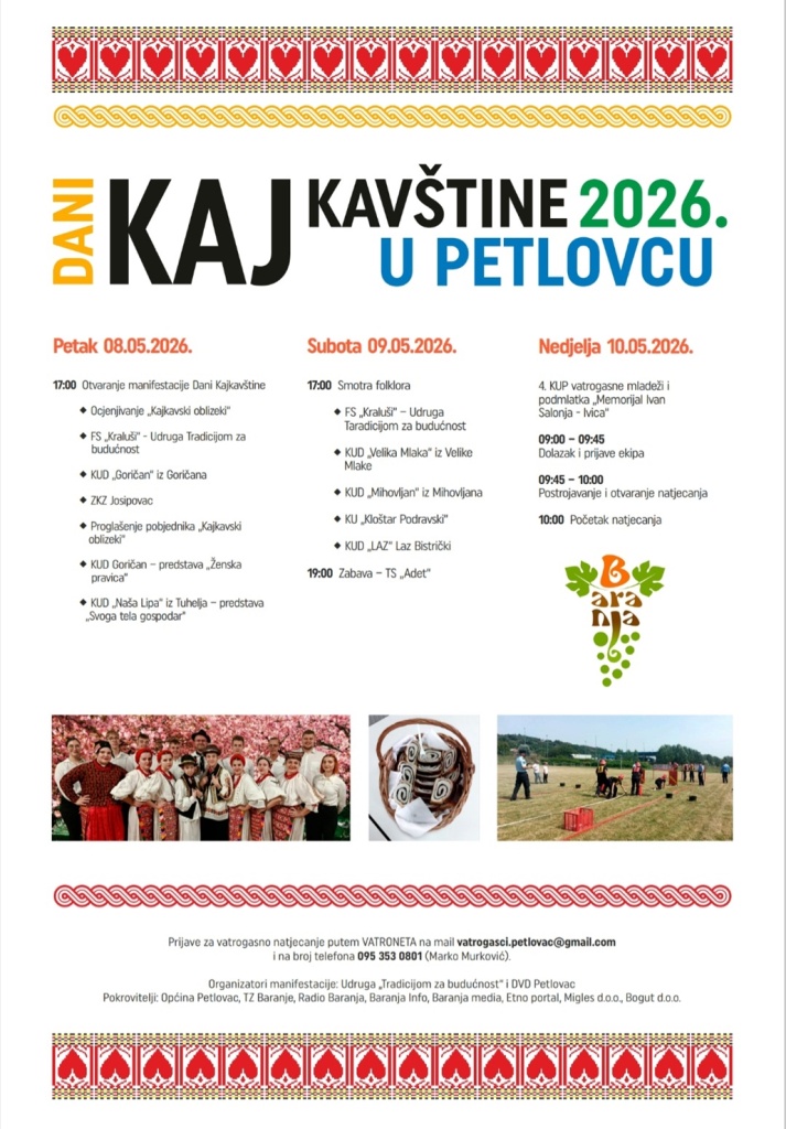 • Dani kajkavštine u Petlovcu održat će se od 8. do 10. svibnja 29. travnja 2026.
