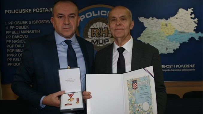Načelnik Policijske uprave osječko-baranjske Ladislav Bece u ime predsjednika Republike Hrvatske Zorana Milanovića, dodijelio je Mati Šalinoviću i Željku Vajdi odlikovanje Red hrvatskog pletera.