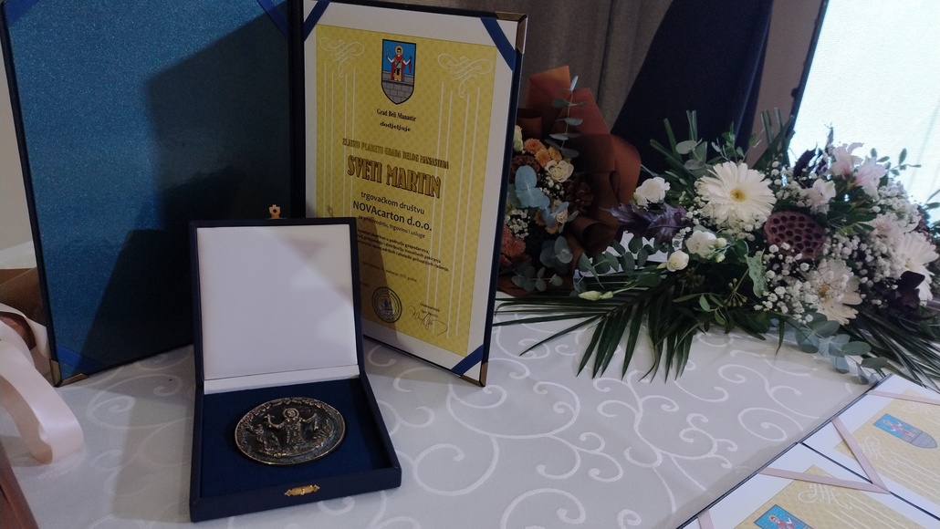 Zlatna plaketa “Sveti Martin” dodijeljena je trgovačkom društvu NOVAcarton d.o.o. za izuzetan doprinos u području gospodarstva, proizvodnju i distribuciju inovativnih pakiranja od kartona i razvoj održivih i ekološki prihvatljivih rješenja.