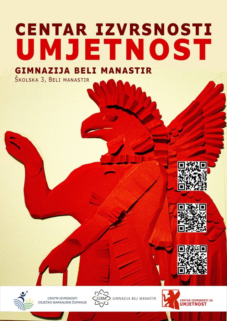 U suradnji s Osječko-Baranjskom županijom, Gimnazija Beli Manastir je postala  Centar Izvrsnosti za Umjetnost! Centar izvrsnosti će okupiti najdarovitije i najtalentiranije učenike i učenice županije koje će dolaziti u Beli Manastir na vođene likovne radionice. Tokom rada centra bit će organizirani dodatni sadržaji za sve zainteresirane, pozivi škola će biti odaslani tokom sljedećih tjedana, a početak Centra se očekuje krajem studenog.