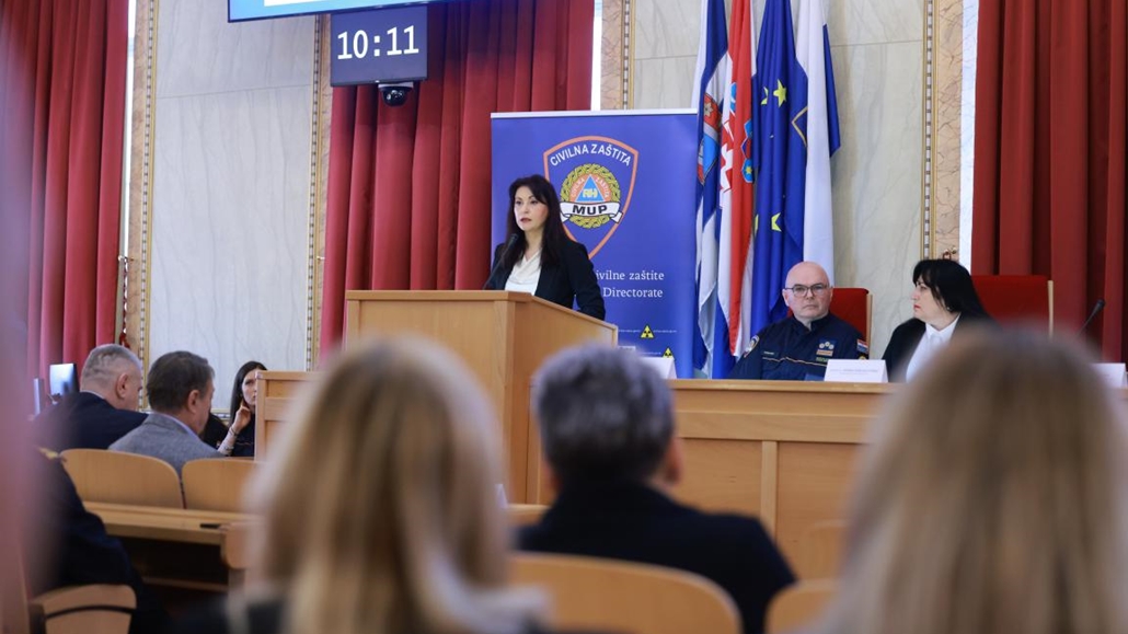U Velikoj vijećnici Osječko-baranjske županije je, u organizaciji Područnog ureda civilne zaštite Osijek,  održana javna tribina „Sigurnost EU i odgovor sustava za krizne situacije na ugroze“ s ciljem isticanja važnost koordinacije lokalne samouprave s europskim sigurnosnim standardima. Sudionike tribine, najvećim dijelom predstavnike lokalne samouprave i čelnike operativnih snaga sustava civilne zaštite te stručnjake za sigurnost i krizni management, uvodno je pozdravila županica Nataša Tramišak.