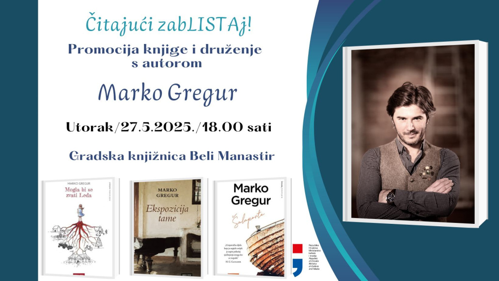 Gradska knjižnica Beli Manastir poziva na promociju knjiga autora Marka Gregura, koja će se održati u Gradskoj knjižnici Beli Manastir u utorak, 27. svibnja 2025. godine s početkom u 18 sati.