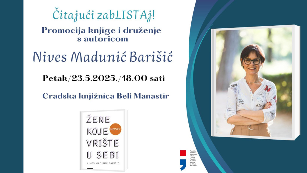 Gradska knjižnica Beli Manastir poziva na promociju knjige “Žene koje vrište u sebi” autorice Nives Madunić Barišić, koja će se održati u Gradskoj knjižnici Beli Manastir u petak, 23. svibnja 2025. godine s početkom u 18 sati.