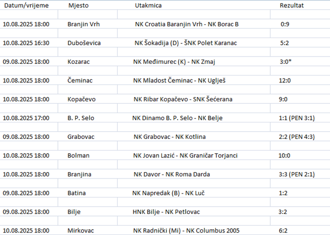 U nastavku donosimo rezultate KUP-a seniora 25/26 NS Beli Manastir: