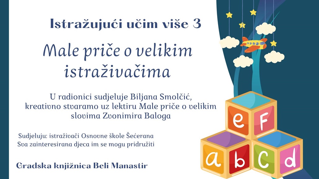 Gradska knjižnica Beli Manastir poziva svu zainteresiranu djecu da se pridruže malim istraživačima Osnovne škole Šećerana na radionici “Male priče o velikim istraživačima“, od ponedjeljka 15. rujna.