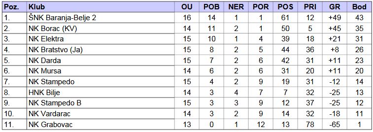 • NS Beli Manastir – Tablice mlađih kategorija 20. travnja 2026.
