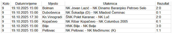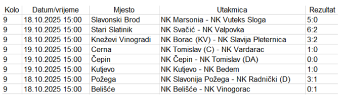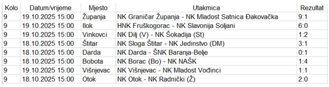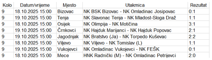 Međužupanijska nogometna liga Osijek – Vinkovci 25/26., 9. kolo