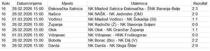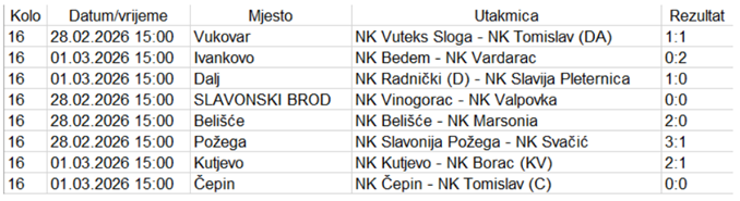 • NS BM – Rezultati utakmica 16. ožujka 2026.