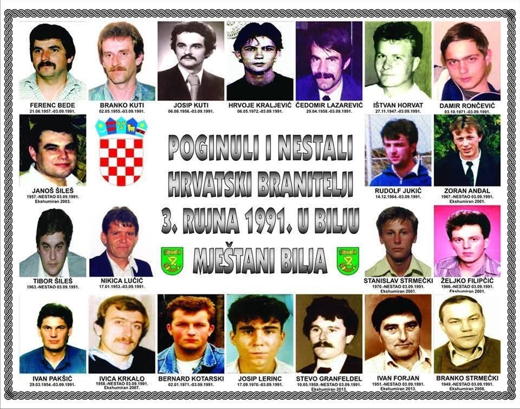 Općina Bilje poziva vas na odavanje počasti poginulim i nestalim mještanima Bilja – položit će se vijenci i zapaliti svijeće u spomen na hrabre hrvatske branitelje koji su 3. rujna 1991. godine položili svoje živote u obrani Bilja i slobode Republike Hrvatske.