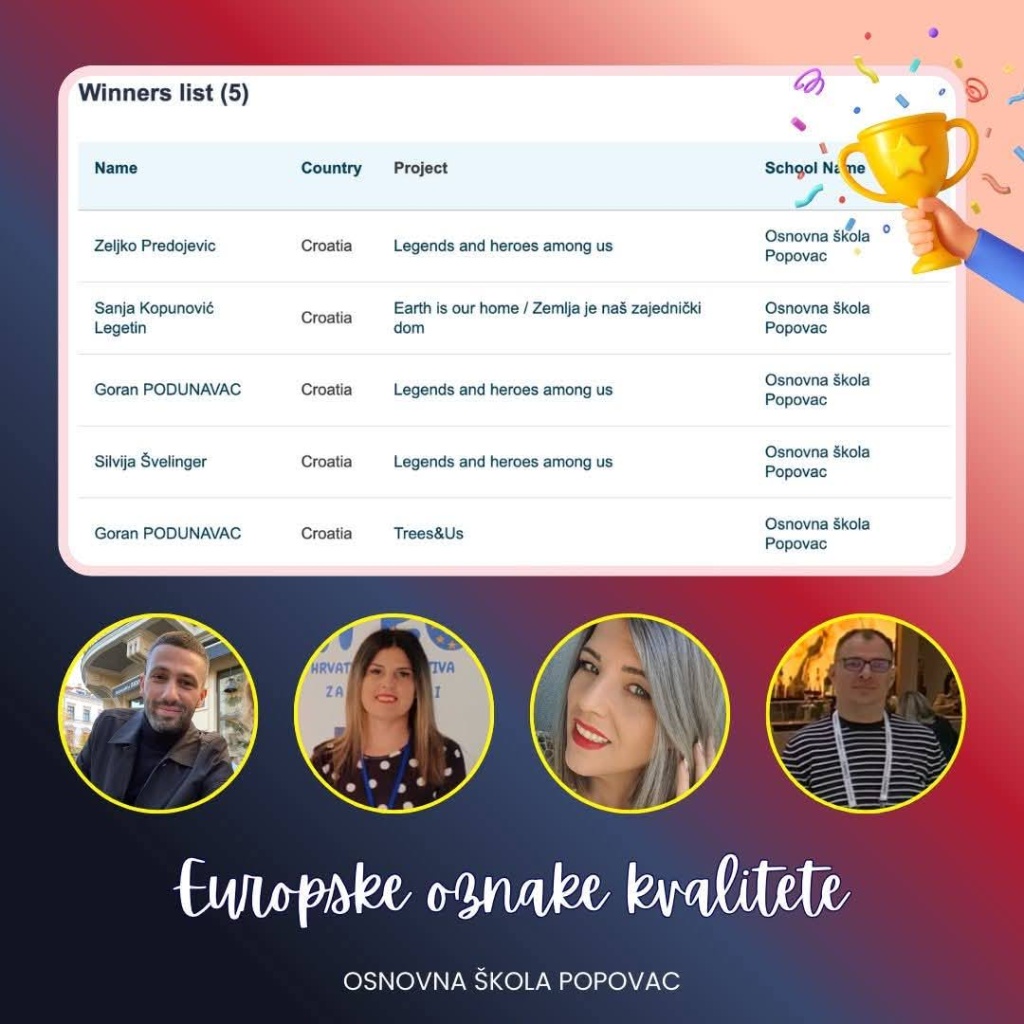 Čestitke i od nas svim učiteljima i učenicima koji su svojim trudom, kreativnošću i timskim duhom zaslužili čak pet europskih priznanja!