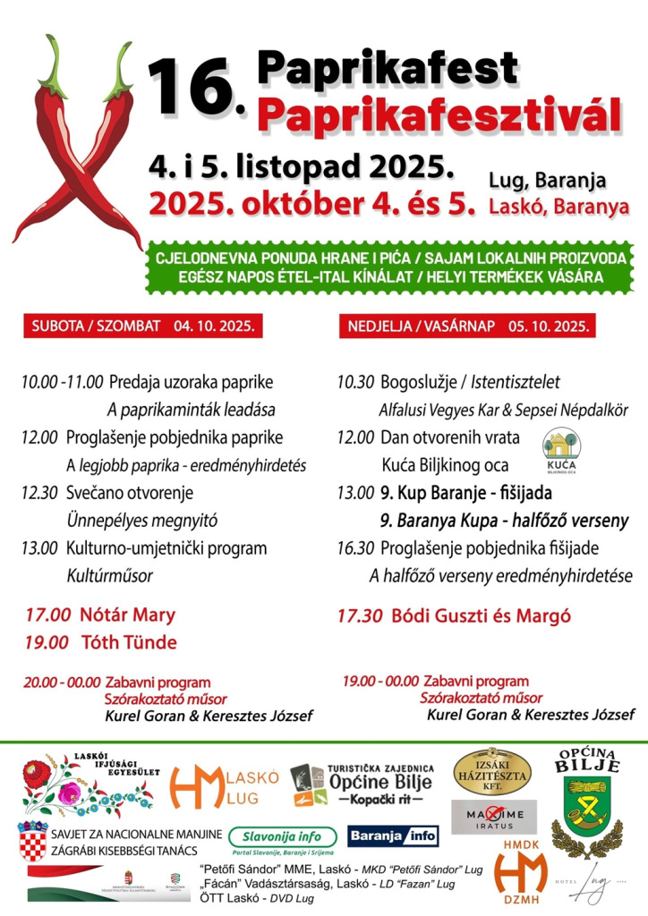 Najveća sajamska ponuda začinske crvene paprike, lokalni proizvodi, gastronomska ponuda, kulturno-zabavni program, očekuje vas prvog vikenda u listopadu. Crvene slatke, ali i ljute papričice duša su svakog baranjskog jela.