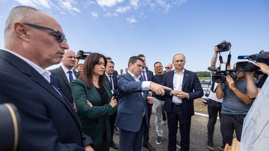 Potpredsjednik Vlade i ministar mora, prometa i infrastrukture Oleg Butković s potpredsjednikom Vlade i ministrom obrane Ivanom Anušićem, županicom Osječko-baranjske županije Natašom Tramišak i suradnicima obišli su radove na izgradnji dionice koridora 5C.