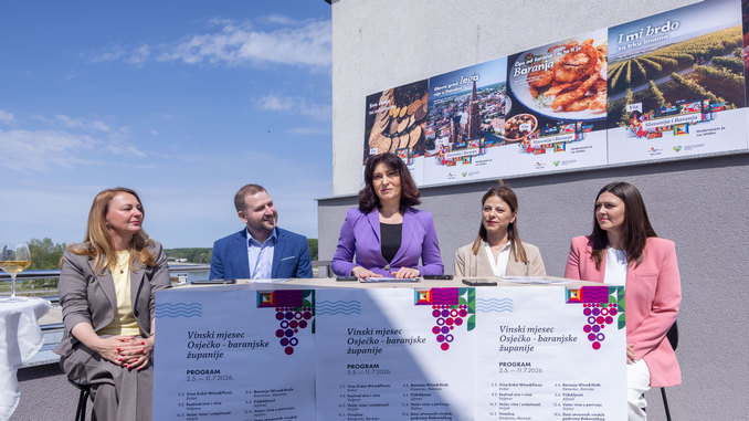 Predstavljen je 7. Vinski mjesec Osječko-baranjske županije i trajat će od 2. svibnja do 11. srpnja na području cijele županije. Sedmi put organiziraju ga TZ OBŽ u suradnji s turističkim zajednicama Valpova, Osijeka, Draža, Baranje, Našica, Erduta i Đakova.