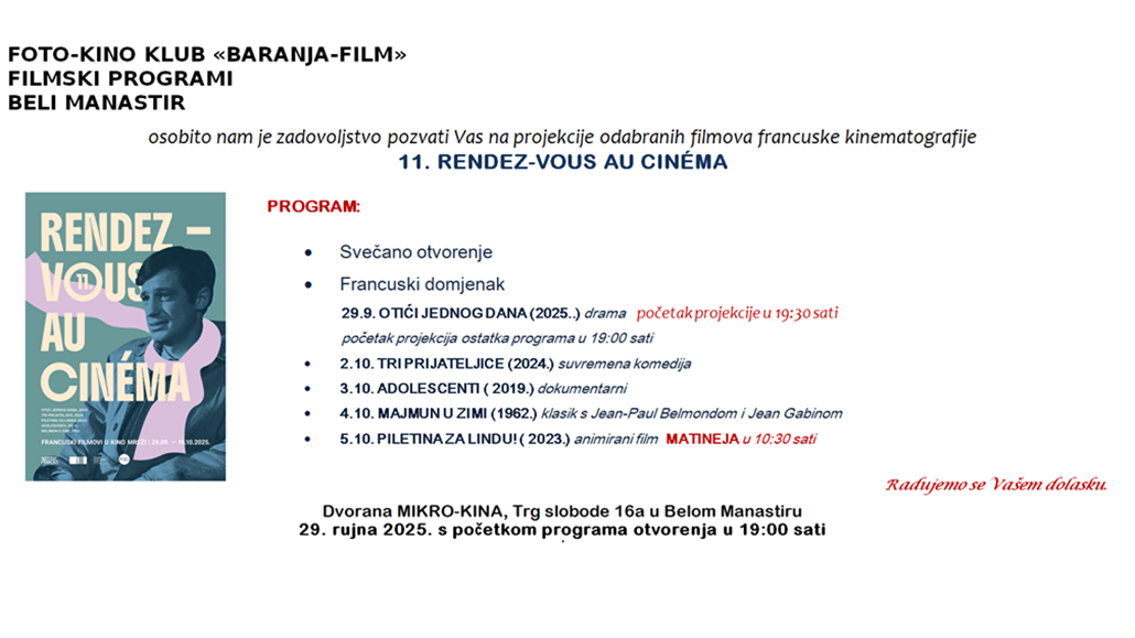 Rendez-vous au cinéma u Belom Manastiru!