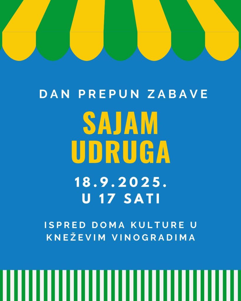 Udruga žena “Izvor” organizira Sajam udruga koji će se održati u četvrtak,18. rujna ispred Doma kulture u Kneževim Vinogradima.