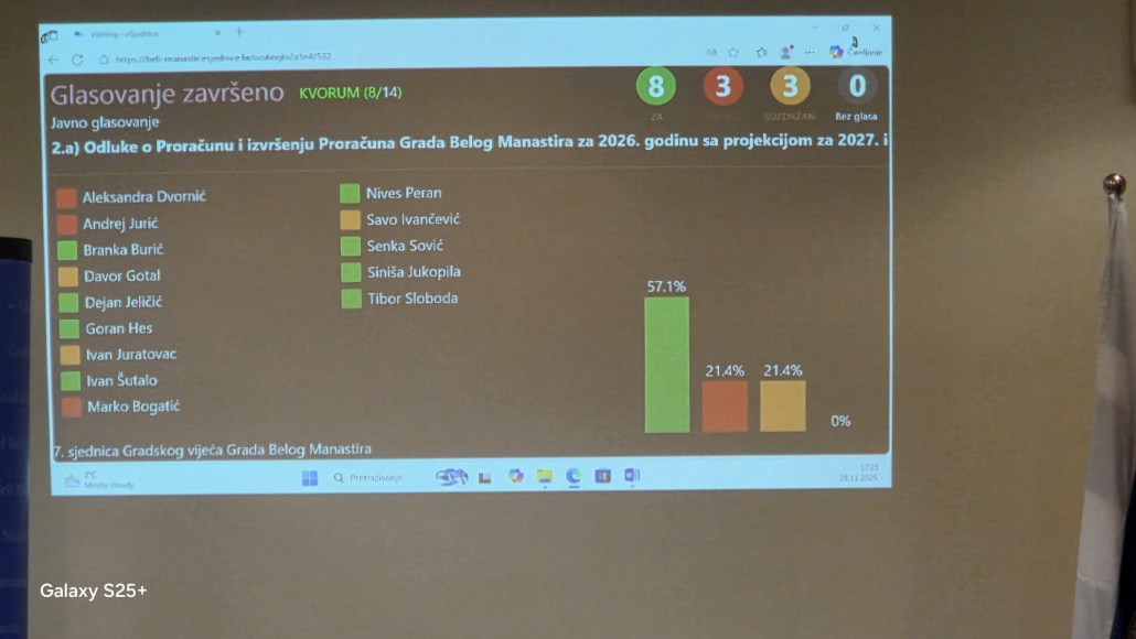 SJEDNICA GRADSKOG VIJEĆA BELOG MANASTIRA – Pavelić: ”Proračun za 2026. godinu je usvojen”