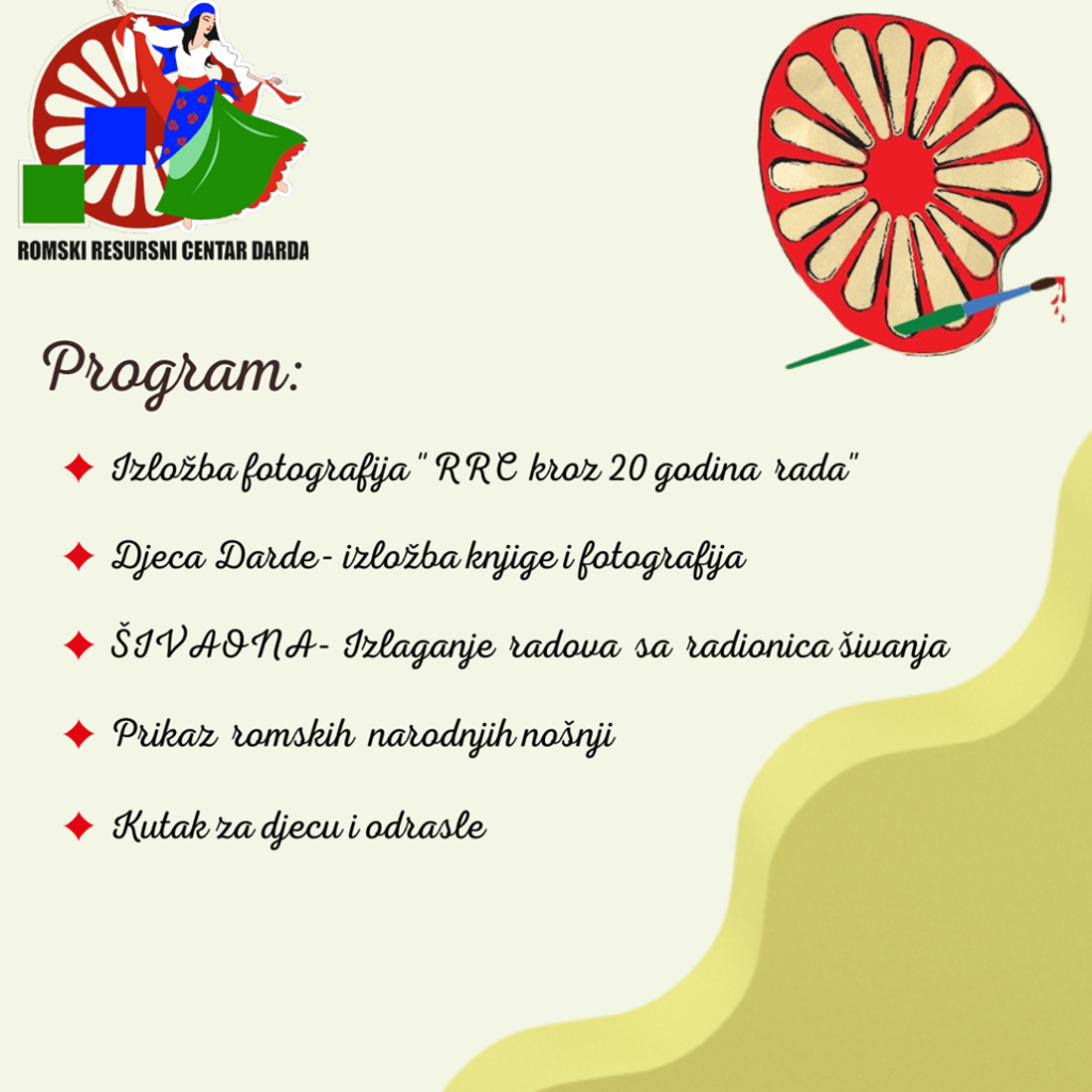 Romski resursni centar iz Darde obilježava “Svjetski dan Roma” u subotu 8. travnja s početkom u 14:00 sati u Društvenom centra u Dardi (bivša srednja škola, Svetog Ivana Krstitelja 109).