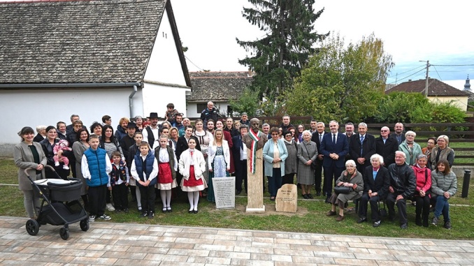 Središnji trenutak komemoracije bilo je otkrivanje spomenika. Árpád Pasza, bivši član književne sekcije Pódium, izložio je okolnosti nastanka spomenika, naglasivši važnost zajedništva i volonterskog rada. Potom je govor održao Róbert Jankovics, predsjednik Demokratske zajednice Mađara Hrvatske (DZMH), koji je poručio: