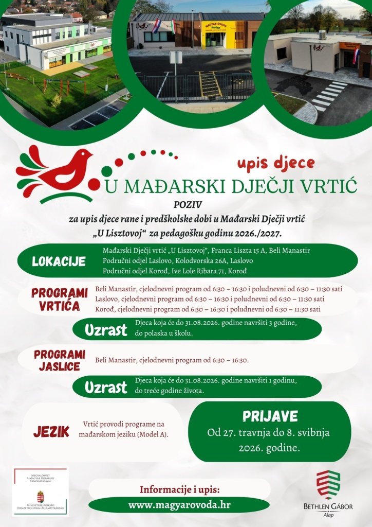 U tijeku su još i upisi u Mađarski Dječji vrtić „U Lisztovoj“;