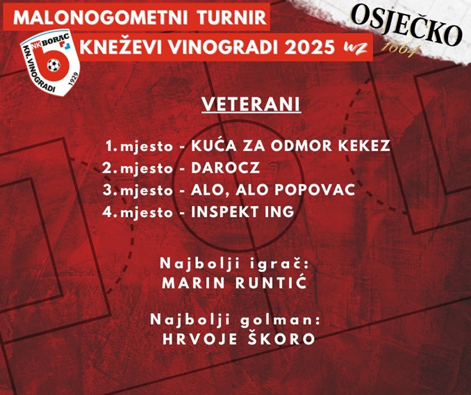 Malonogometni turnir u Kneževim Vinogradima u organizaciji NK Borac završio je nakon 13 dana i nadmašio sva očekivanja!